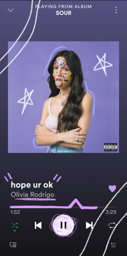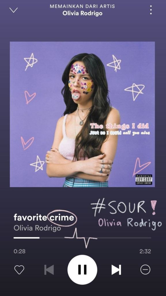 SOUR By Olivia Rodrigo Brutal Traitor Drivers license 1 step forward, 3 steps back Deja vu Good 4 u Enough for you Happier Jealousy, jealousy Favourite crime Hope ur ok